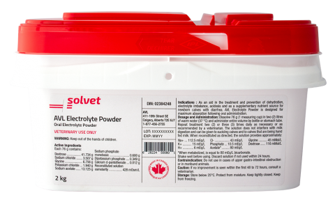 As an aid in the treatment and prevention of dehydration, electrolyte imbalance, acidosis and as a supplementary nutrient source for newborn calves with diarrhea. AVL Electrolyte Powder is designed for maximum absorption following oral administration.